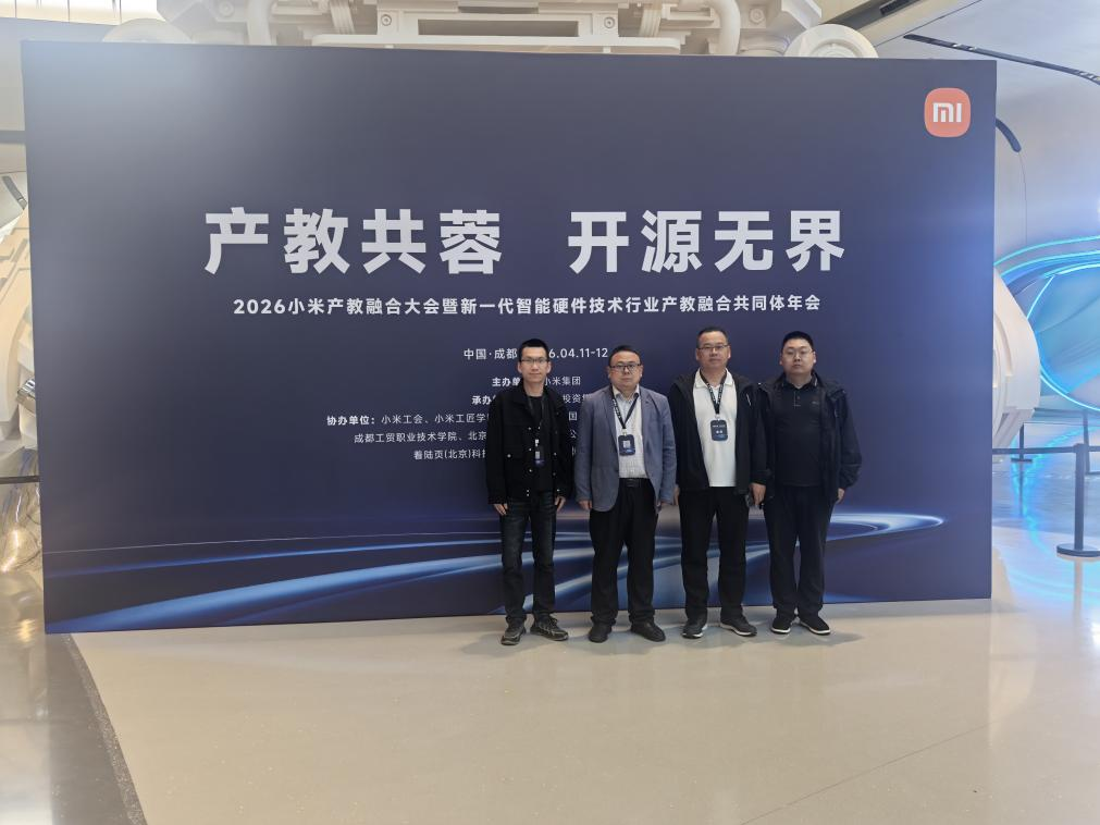 为深化产教融合和访企拓岗、进一步推进校企协同育人,精准对接新一代智能硬件产业人才需求,4月10日-4月12日,“产教共蓉·开源无界—小米产教融合大会暨新一代智能硬件技术行业产教融合共同体(2026)年会”在成都科幻馆召开。信息工程学院院长孙滨、副院长吴波、物联网工程教研室主任阮家帅、电子信息工程教研室主任刘利飞一行参加会议。