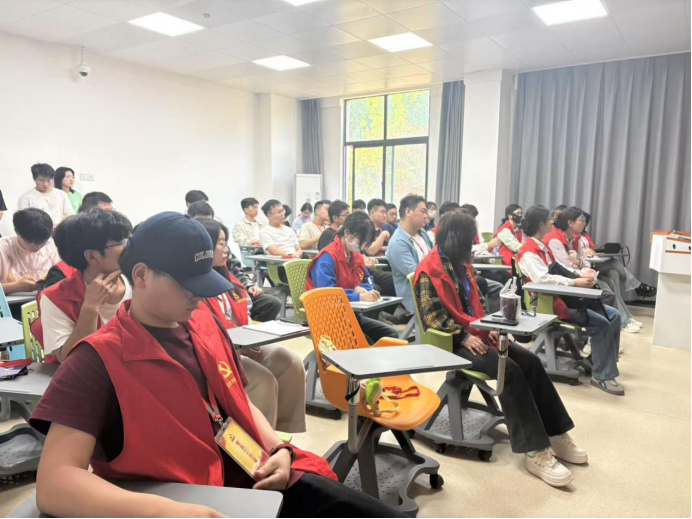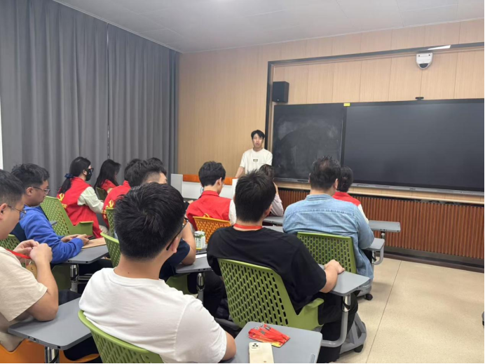 在活动开始前,孙富豪作为此次志愿活动的负责人,有条不紊地给所有志愿者进行工作安排。他向志愿者们说明,此次志愿服务涵盖多个关键环节,从答辩时的计时叫号、现场秩序的维护,到答辩内容的记录等,每一项任务都至关重要,需要大家认真对待。同时,为了确保全天的志愿服务工作无缝衔接,孙富豪还着重强调了上午志愿者和下午志愿者的工作交接事宜,要求双方详细沟通工作进展和注意事项,保证答辩工作不受任何影响。