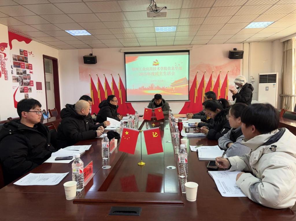 为深入学习贯彻相关精神,切实加强领导班子自身建设,提升班子凝聚力与战斗力,1月22日,郑州工业应用技术学院信息学部2025年度领导班子民主生活会在信科楼2-301会议室隆重召开。学部党委书记樊洪深主持会议,全体领导班子成员参会,会议由王二鑫、胡国栋负责记录。