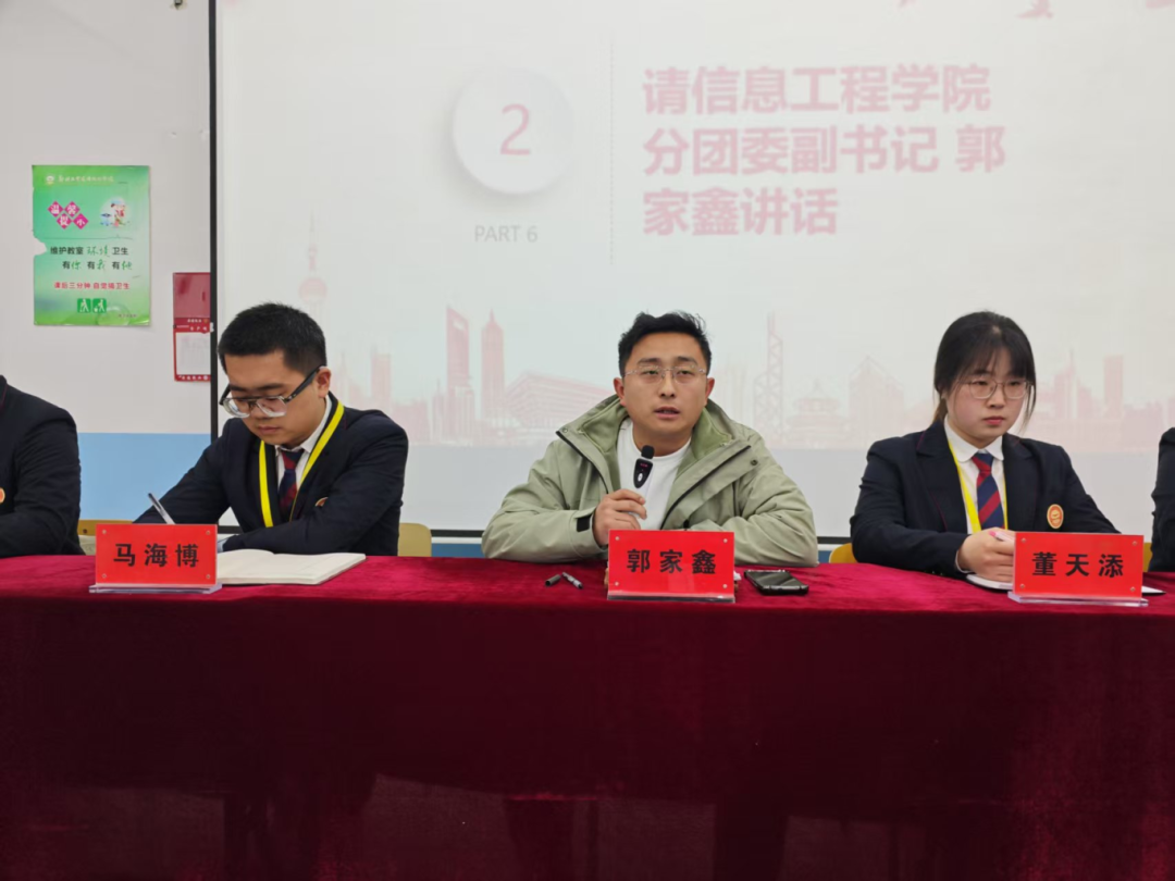 接着,我院分团委副书记郭家鑫老师对学生干部的工作情况进行了分析与总结。他首先肯定了学生干部为工作付出的努力,同时也强调了学生干部全心全意为学生服务的宗旨。其次,他指出,希望同学们能够提高自己的执行力。
