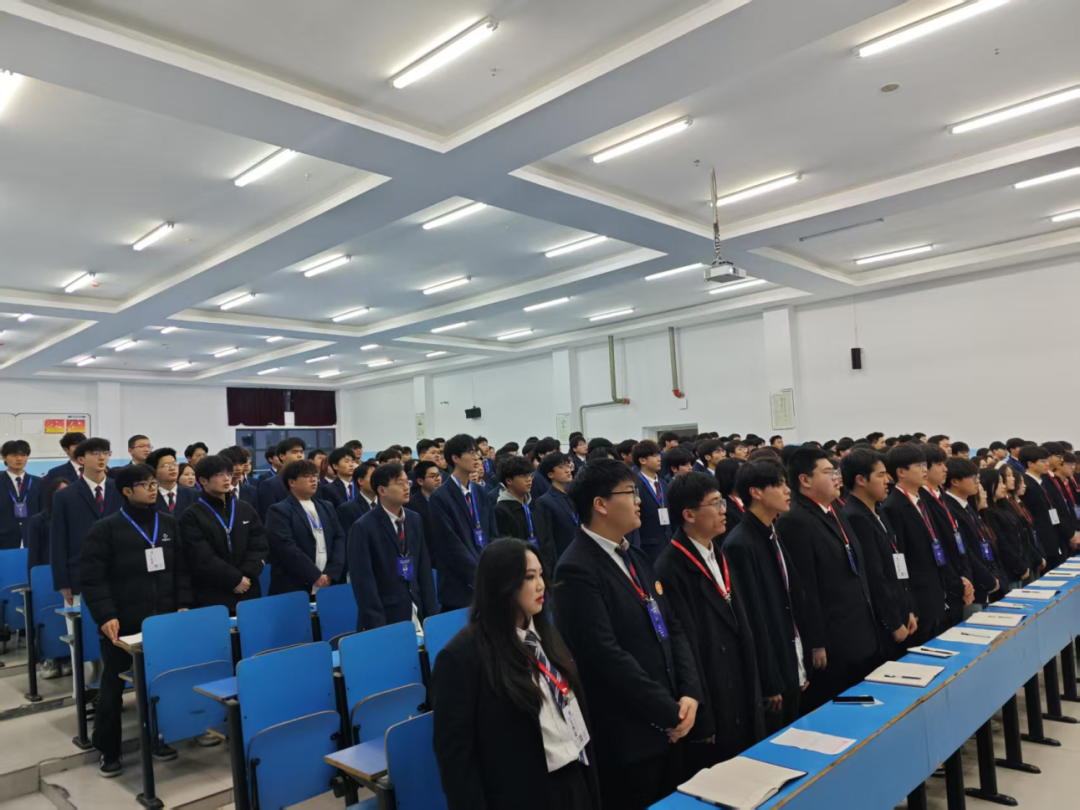 本次会议,学生干部全体身着正装,精神抖擞,有序地入场落座。待一切工作准备就绪后,大会开始进行第一项,全体起立,奏唱国歌。