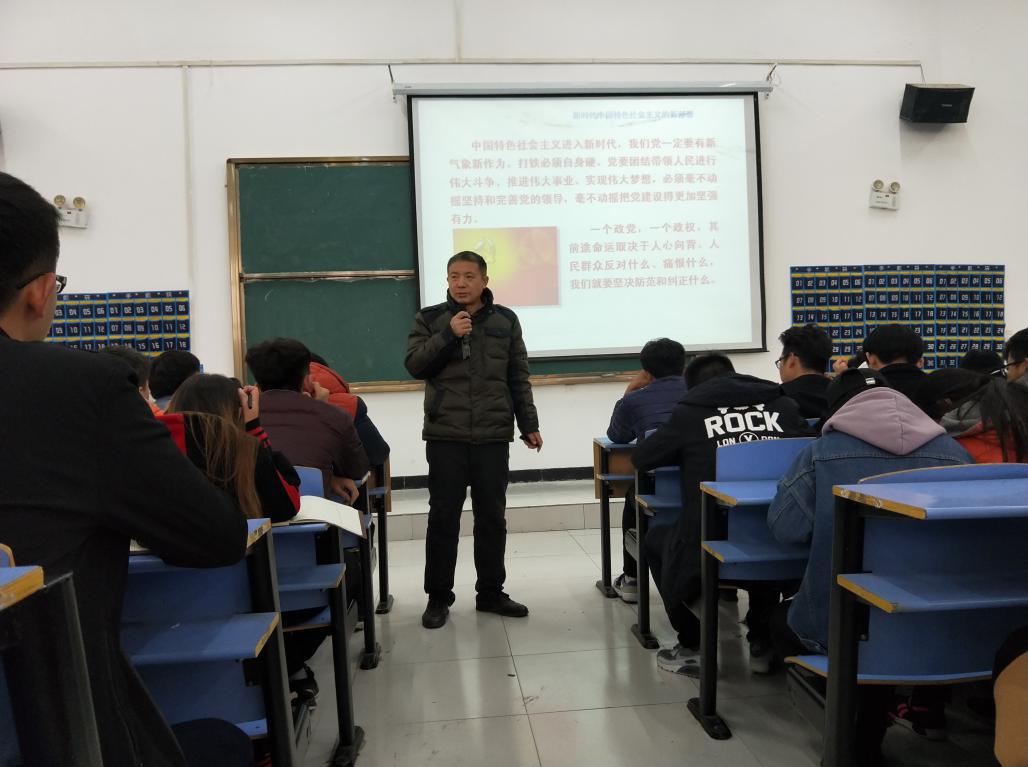 为庆祝党的十九大胜利召开,发动青年学生更加全面透彻的学习学习党的十九大精神。11月21日下午,信息工程学院特邀请思政部张锋主任在信科楼阶六大教室为同学们解读十九大报告。在本次报告会中,张主任对党的十九大精神作了全面、系统、深入的分析,并将“党的建设”作为重点篇章为学生解读。