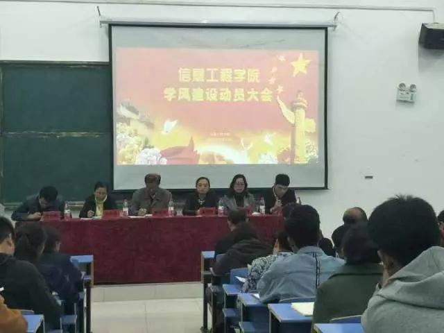 学风建设是学校各方面发展的灵魂,良好的学风对培养优秀学生、提高教学质量、构建和谐校园有着重要作用。为进一步促进学校优良学风的形成,根据学校下发相关文件精神,结合学院实际。10月24日晚,信息工程学院在信科3阶六大教室召开学风建设动员大会。信息工程学院院长谭同德教授,信息工程学院党总支书记、副院长董瑞瑞书记,信息工程学院副院长关秀芬教授,信息工程学院副院长毛建景老师,信息工程学院全体教职工以及各年级、各班级学生代表参加了此次会议,会议由李费腾老师主持。