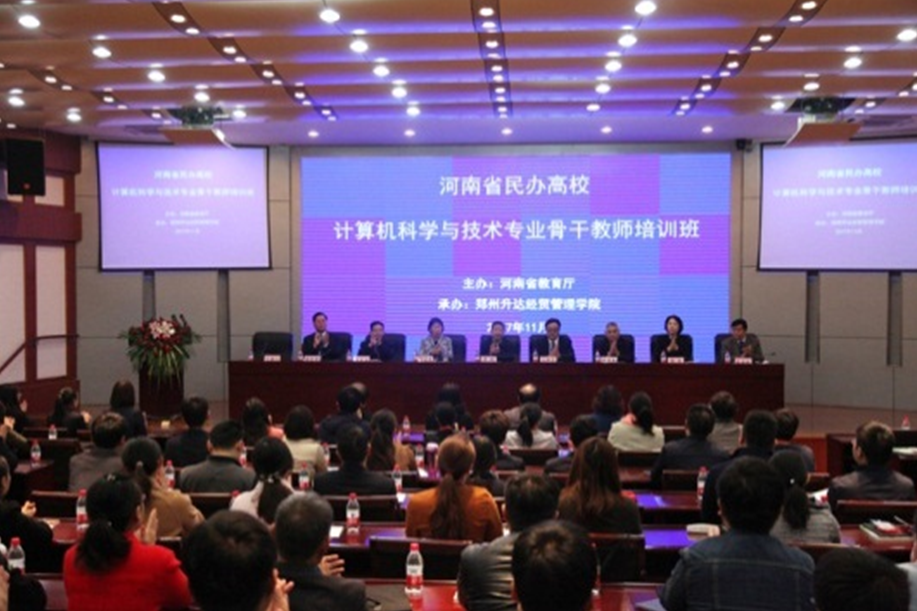 11月2日至3日,由河南省教育厅主办的河南省民办高校计算机科学与技术专业骨干教师培训班在郑州升达经贸管理学院举办。2日上午,培训班开班仪式在国际会议厅开幕。出席开班仪式的上级领导和嘉宾有:河南省教育厅政法处处长李敏,北京首都师范大学教授、中国人工智能学会教育工作委员会主任王万森。河南省36所民办高校的70多位计算机科学与技术专业骨干教师参加会议。我校信息工程学院院长谭同德教授、副院长毛建景、计算机科学与技术教研室主任孙滨及计算机科学与技术专业教授李秀丽参加本次培训班。