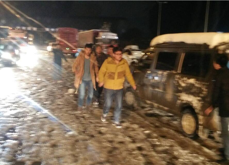 11月22日,一场大雪突临郑州,这也是入冬以来的第一场雪。在银装素裹下,路面也被厚厚的积雪覆盖,给车辆和群众的出行带来很大的困扰。这一天,在学院老师的带领下,我院2015级计算机网络技术专业按照教学计划安排,到郑州智游公司进行实习实训,因为突降大雪,返校的车辆在下午三点就安排返校。却因大雪纷飞,交通阻塞,寸步难行,直到晚上9点多还在郑州边界徘徊。道路上的车辆更是川流不息,寸步难行,甚至有不少车辆陷进雪潭里。就在大家焦急而又无奈等待的过程中,前边数十辆车因为积雪太厚无力自拔,深陷雪潭,见此现状,2015级计算机网络技术一班的学生们奋不顾身,果断下车,帮助推车。在班长耿顺利的带领下,同学们积极踊跃参加投入到雪天推车的活动中。大家合理分工、组织有序,赵爽、路银浩、李留阳、付燚等几位同学负责陷入雪潭最前边的车辆,胡明晖、王春雷、王德旺、周可等几位同学负责紧跟着的第二辆车……大家口号一致,步调统一,心往一处想,劲往一处使,致力于推车“大战”,只希望能早点脱离困境,安全回家。此时,他们忘记了“回家”的路,忘记了饥饿和严寒,风雪打在他们稚嫩的脸上,他们挥挥袖子继续前行,有的同学脱下了外套,有的同学收了下腰带,甚至有的女生扎起了长长的散发……此情此景感动了周围的车主,感动了来往的路人,他们用诧异的目光看着这一场景,或许他们在疑惑,这可能是熟人之间的帮助,不!这不是,我们只是素不相识的过路人,我们是郑州工业应用技术学院的学生。当路人知道了这一切,纷纷竖起了大拇指,并加入到了推车队伍。天很冷,而大家的心里却很暖和,虽然他们遭受着饥饿和严寒,他们面临着遥遥无期的“回家路”,但是在紧要关头,他们用仅存的一丝体力毫不犹豫的奉献给了社会,风险给了这些最需要的路人,这就是郑工精神,信工风彩。直到凌晨12点半这群可爱的学生才安全返回学校,虽然很晚、很冷、很饿,但是大家都没有怨言,心里都是暖暖的!这群可爱可亲的学生助人为乐的精神与我院的谆谆教导是密不可分的,长期以来,我院学生积极弘扬“厚德敬业、求实致用”的校训精神,贯彻落实杨校长提出的“五个一工程”,发扬“天天学雷锋、人人做好事”的优良传统,以高度的责任感和浓厚的爱人、善人之心严格要求自己,主动做好事,传播正能量。广大学生在日常注意细节,凡事从一点一滴做起,养成了良好的生活作风习惯,才在关键时刻凸显社会大爱,彰显铁肩道义。