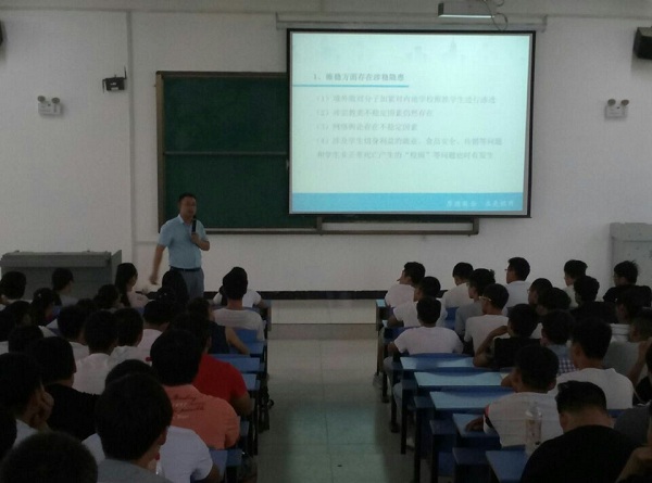安全是头等大事。为了加强学生的安全意识与自我保护的能力,2016年9月1号上午,校保卫处黄家福处长在信科楼阶梯五和阶梯六教室召开安全教育主题报告会。黄处长围绕宗教信仰、安全教育以及电信诈骗三个方面向同学们详细讲解如何保卫自身安全以及如何防诈骗的方法,使得学生的安全意识得到了较大提升。黄处长的报告生动有趣,赢得同学们阵阵掌声。