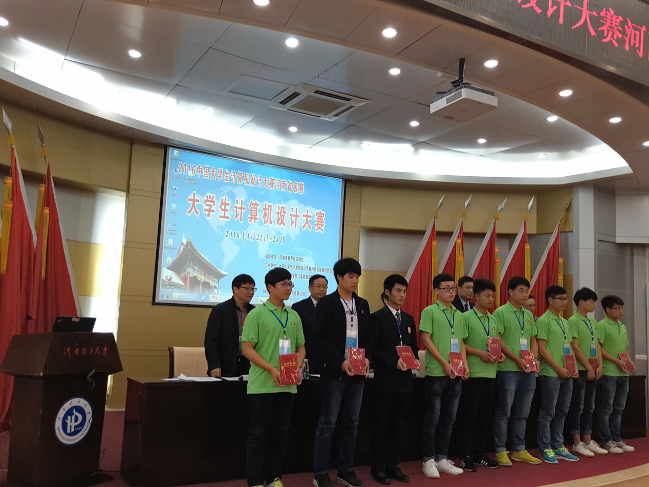 2016年4月22日至24日,“2016中国大学生计算机设计大赛河南省级赛”在河南理工大学举行,我校参赛作品全部获奖。