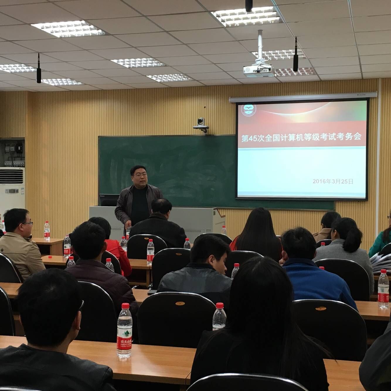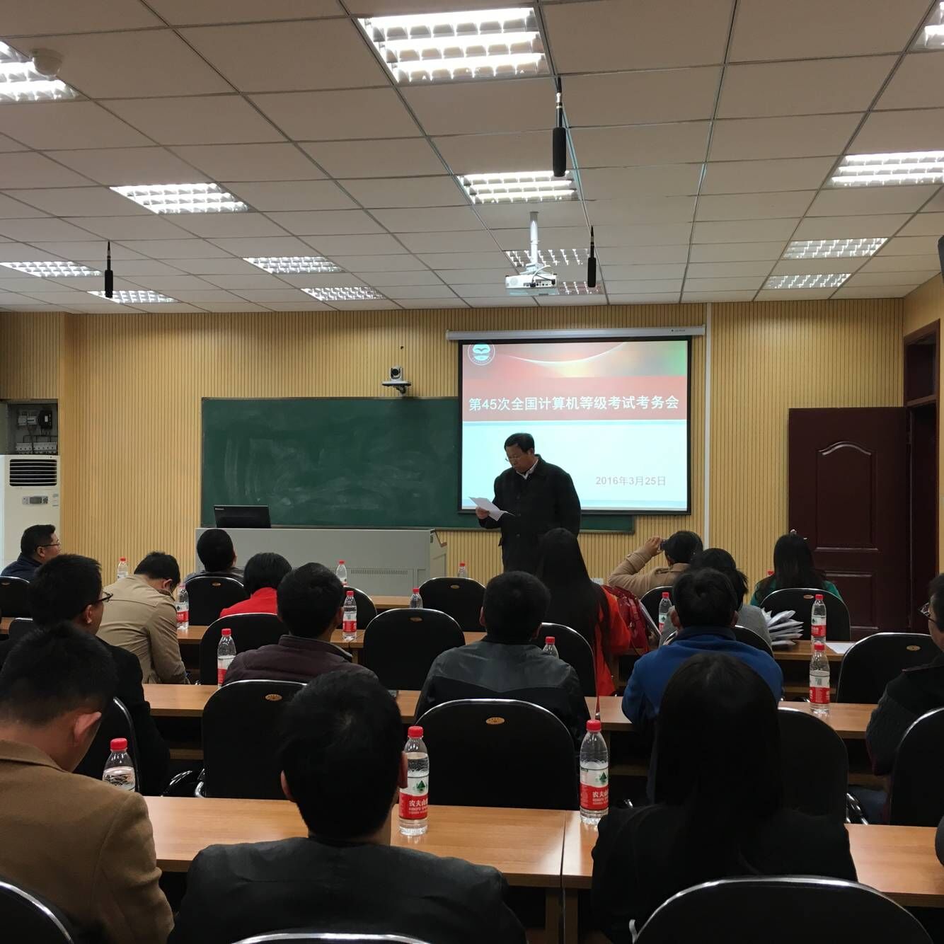 2016年3月25日下午5点,第45次全国计算机等级考试郑州工业应用技术学院考点考务会在信科1录播室顺利召开,参加本次会议的有校党委副书记、副校长张清华副教授、信息工程学院院长谭同德教授、党总支书记、副院长董瑞瑞、副院长毛建景以及本次考试考务人员和监考教师。首先,谭院长对本次考试的报考人数、考试时间及考场安排等事项做了详细介绍,并对本次考试做出了五点要求;进而,张清华副校长对本次考试做了重要指示,要求考务人员和监考教师一定要有高度的责任感,严抓考风考纪,按照规范操作严格监考,确保本次考试工作顺利进行;最后,由现代教育技术中心赵红超副主任对考试流程以及考试过程中的注意事项做了培训。预祝本次考试圆满成功!
