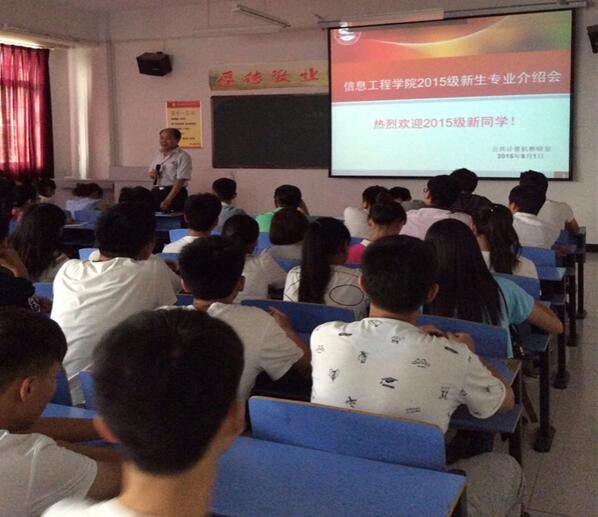 9月1日下午,信息工程学院2015级新生专业介绍会在信科3-107教室召开。本次专业介绍会是公共计算机教研室举办,由我院教师王喜军主持,出席本次见面会的有教研室主任李振亭、教研室副主任刘彩霞等教研室成员以及2015级计算机应用技术、计算机信息管理专业全体新生参加了本次介绍会。