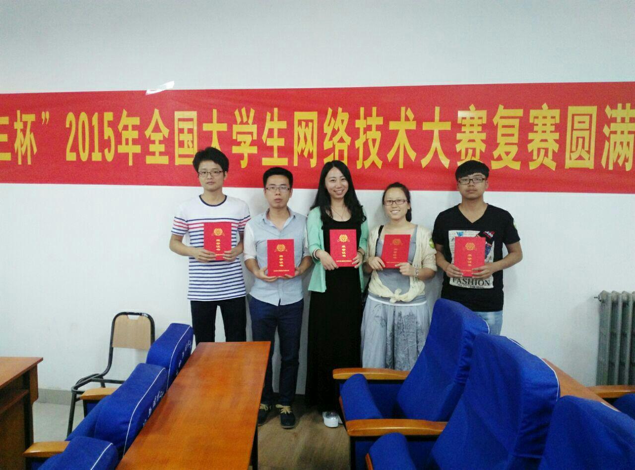2015年4月15日,在“H3C杯” 全国大学生网络技术大赛河南赛区预赛中,陈敬辉、楚乐乐、闫寿林三位同学获得河南省二等奖,刘果同学获得河南省三等奖,指导老师张音老师、孙滨老师获得“优秀指导老师”称号。