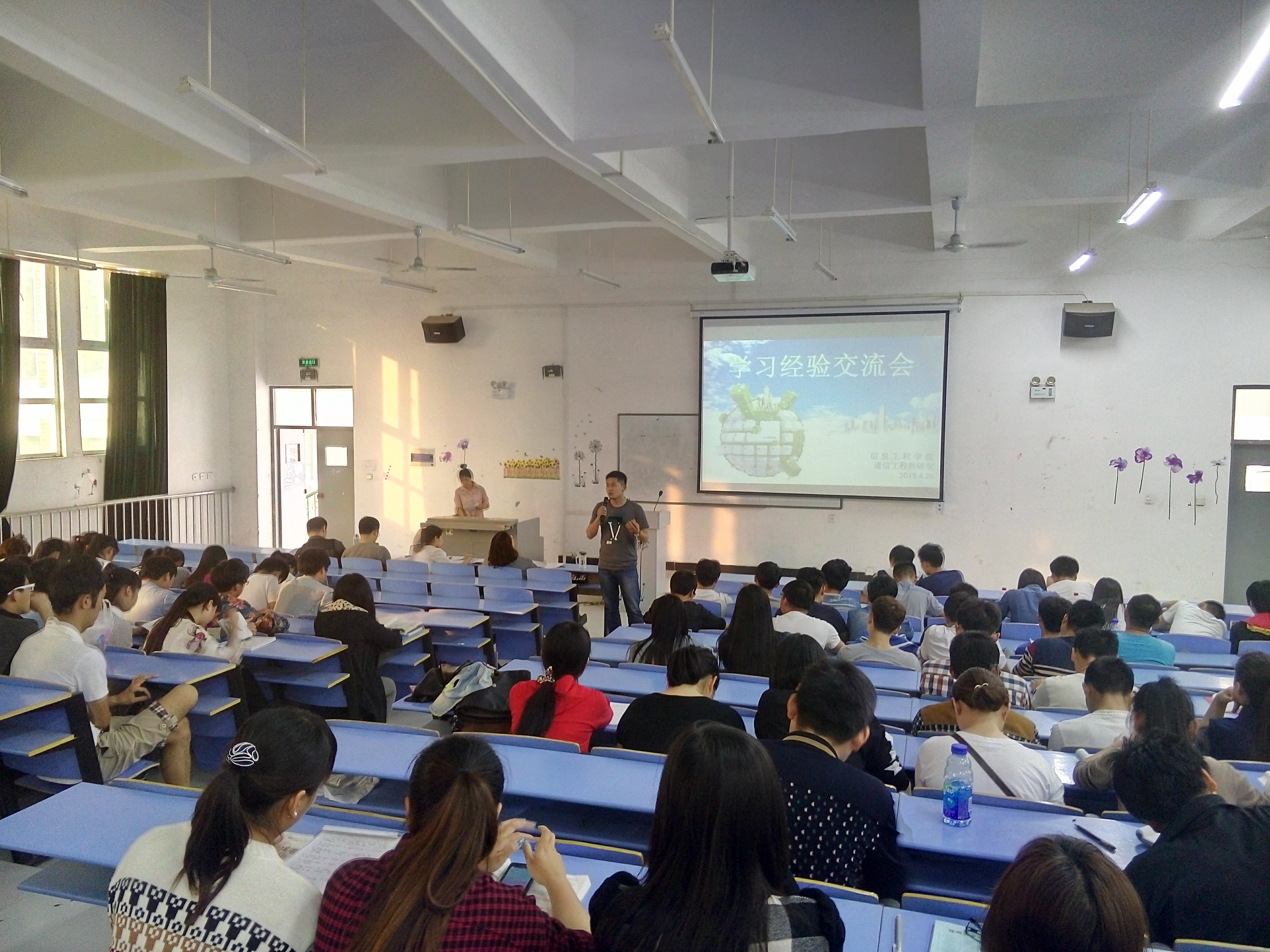 为进一步激发同学们的求知热情,提高学习的积极性,改进学习方法,帮助同学们更好的明确学习发展目标,4月28日下午,由信息工程学院通信工程教研室主办的学习经验交流会在信科楼阶梯教室五顺利举行。参加本次学习经验交流会的领导嘉宾有信息工程学院通信工程教研室主任毛建景老师、通信工程专业教师候远韶老师、朱江波老师、张瑶老师、姚迎乐老师、候晓磊老师以及12级、13级、14级通信工程专业和计算机网络技术专业学生。