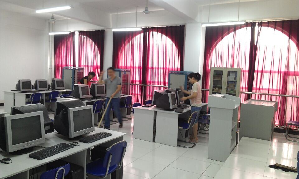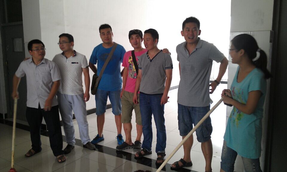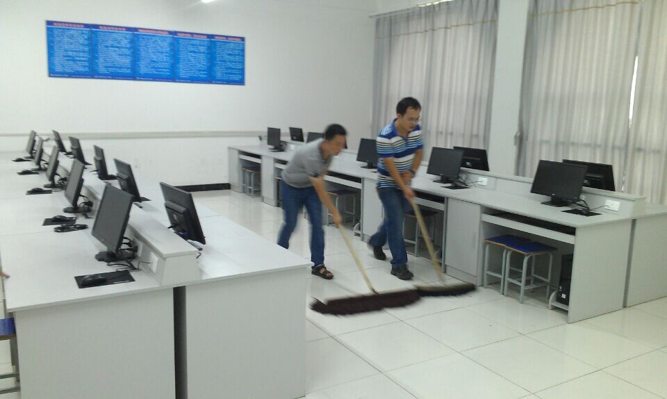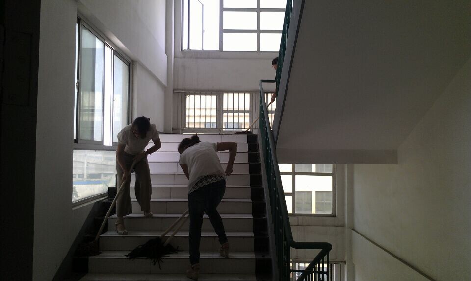 8月15日是教师上班的第一天 ,经过一个假期,整个教学楼、实验楼布满了尘土,为了迎接新的学期,展现我们崭新的面貌,信息工程学院全体教师在冯光辉副院长的带领下利用15-16号两天上午的时间进行了大扫除,包括信科楼三整个教学楼的楼道楼梯、各办公室,信科楼二的四楼和五楼楼梯楼道以及11个专业实验室。大家分工明确,责任到人,为14级新生的到来提前做好准备,最后在大家的通力协作下整个教学楼和实验楼的面貌焕然一新。