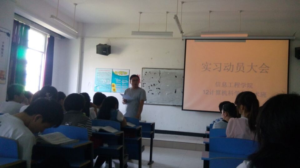 5月23日上午九点,信息工程学院在XK3-107召开了计算机科学与技术专业学生外出实习动员会,毛建景老师认真的安排了外出实习的任务和注意事项,孙滨老师为大家进行了安全教育,带领大家签订了外出实习安全责任书。