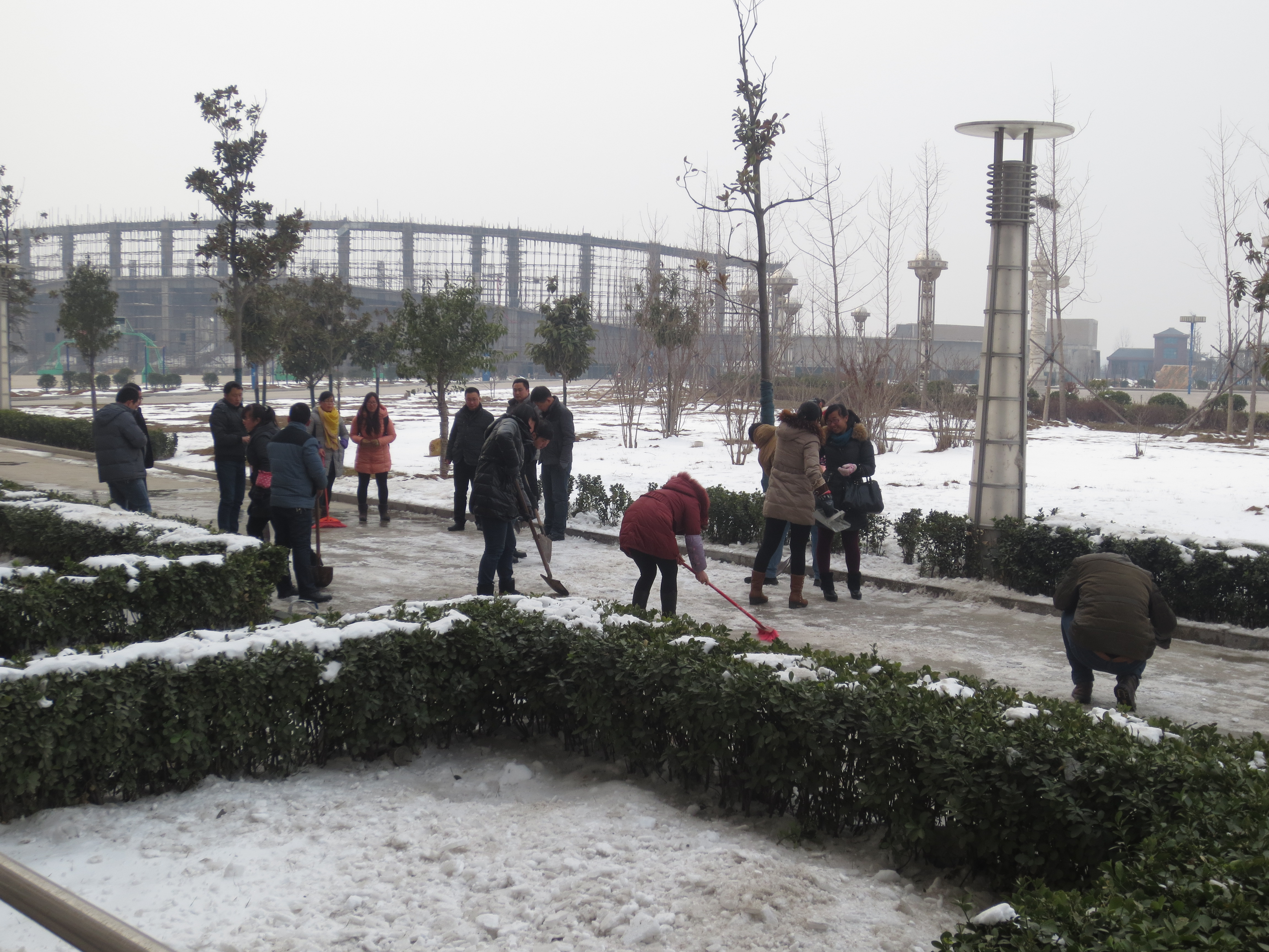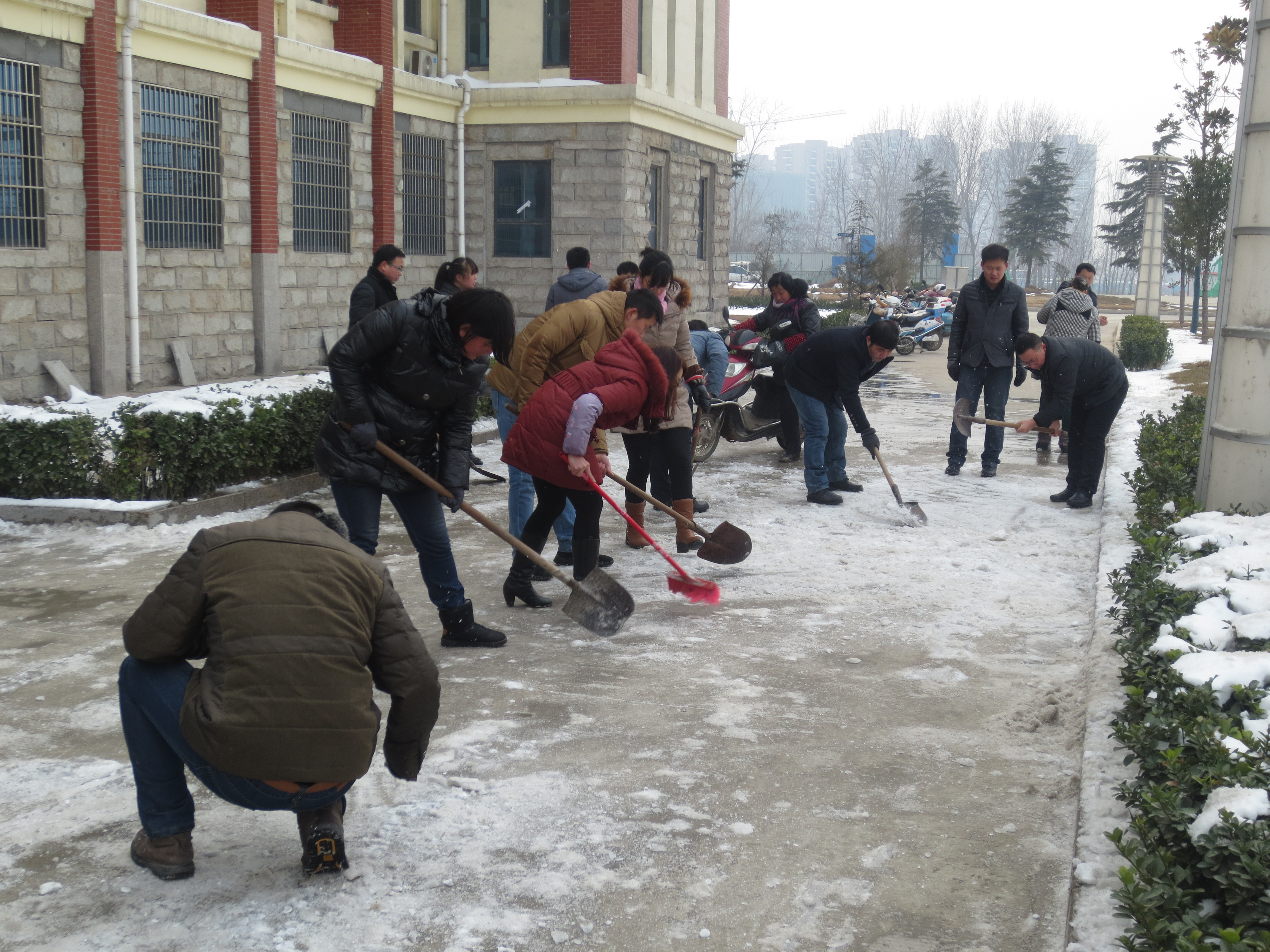 在零下4度的严寒天气中,信息工程系全体教师,在党总支书记冯光辉书记的带领下,清扫整个教学大楼的卫生和楼前的积雪,大家热火朝天,为新学期扫除障碍,创建良好的环境来迎接同学们的返校,同时我们也以崭新的面貌投入到新一年的工作中。