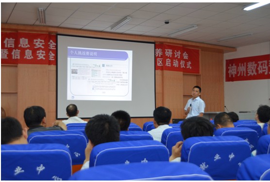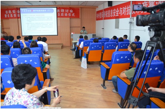 为提升信息安全意识,普及信息安全知识,实践信息安全技术,共创信息安全环境,研讨会同时举行了第十届(2013)信息安全与对抗技术竞赛(ISCC2013)河南分区竞赛启动仪式,北京邮电大学计算机学院信息安全系雷敏博士对ISCC参赛方式及竞赛规则进行了详细说明。研讨会中,神州数码河南总监宋传德经理对神州数码助力信息安全专业建设的情况进行了介绍。研讨会的召开将推动信息安全专业建设在河南高校的发展,促进河南高校计算机教学及改革的进步,并对我校计算机及信息安全教学提供重要参考。