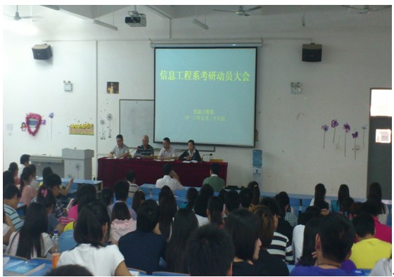 5月28日下午,信息工程系在信科楼阶五举行考研动员会议。信息工程系主任冯光辉、主任助理董瑞瑞、教学秘书赵轲、全体老师及全体本科生参加此次会议。