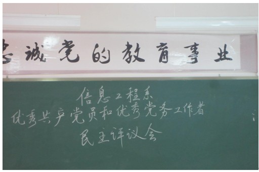 2013年6月7日上午信息工程系全体党员在信科楼3-309办公室召开优秀共产党员和优秀党务工作者民主评议会,会议由信息工程系党总支书记冯光辉同志主持,冯书记给各位党员传达了《关于做好先进基层党组织、优秀共产党员、优秀党务工作者推荐工作的通知》(校党字[2013]3号)文件精神。为表彰先进,弘扬正气,进一步加强党建工作,推进教风学风建设深入开展,更好地发挥党员的先锋模范作用,依照郑州华信学院委员会文件精神,经全体教师党员评选推荐,经系党总支研究决定,向学校党委推荐1名优秀党务工作者、2名优秀党员,并将2013年“两优一先”评选结果公示张贴在信科楼3-309办公室。