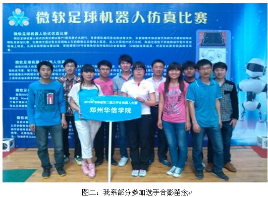 此次比赛信息工程系共派出五支参赛队伍,参加三个项目的比赛,经过紧张激烈的比赛,在机器人游中国(轻量级)比赛中,我系学生李刚、马欠欠、赵中立的荣获了团体一等奖,在微软足球5:5比赛中,我系莫永云,张国栋,李慢慢和孙宏恩,刘文珍,李朋飞分别荣获团体一等奖,在微软足球5:5仿真比赛中,我系学生徐亮,管海洋,赵超慧和杨轲轲,代金闪,薛创伟分别荣获了团体二等奖。