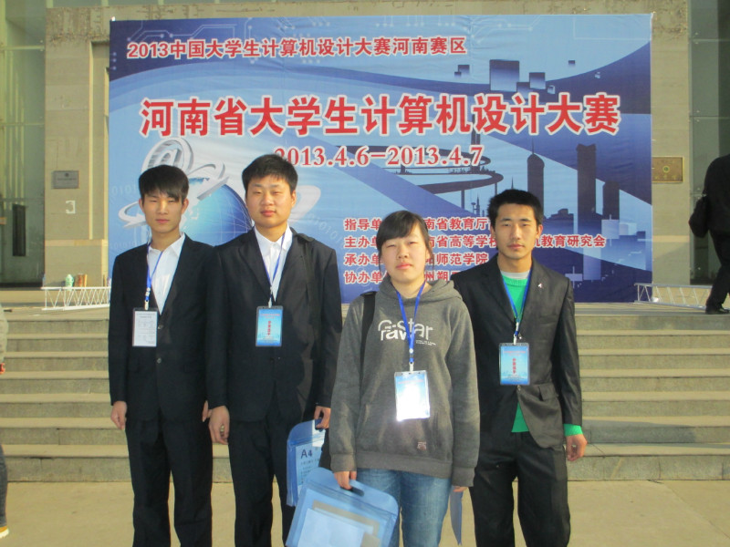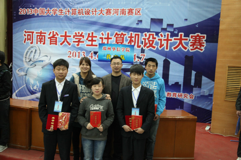 4月7日,由教育部高等学校计算机科学与技术教学指导委员会、教育部高等学校计算机基础课程教学指导委员会联合主办的2013年中国大学生计算机设计大赛河南赛区比赛圆满落幕。我校信息工程系组队参加了此次大赛,经过激烈角逐,信息工程系计算机网络专业学生陈智强、任晓毅获得一等奖,计算机动漫专业学生雷丹获得三等奖,计算机科学与技术专业孙宏恩获得了优秀奖,为学院争得了荣誉。蒋文娟、马骧飞、孙滨3名教师获“优秀指导教师”称号。本次比赛共有全省27所高校,95件作品参加比赛,一等奖作品将在7月代表河南省参加全国计算机设计大赛。