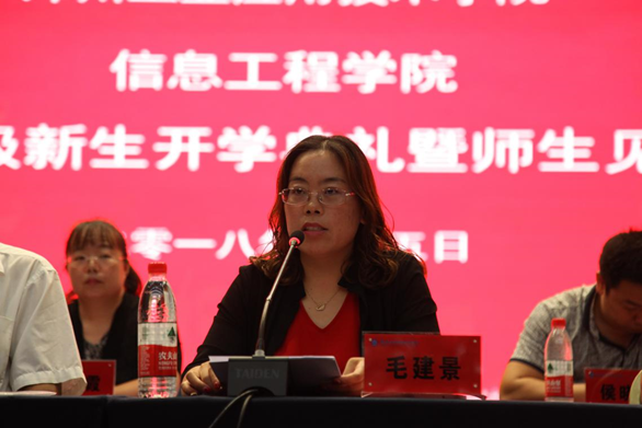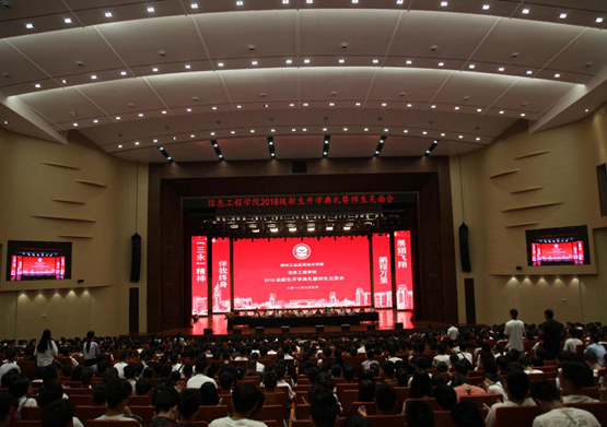 2018年9月5日上午,信息工程学院在国际学术交流中心举办2018级新生开学典礼暨师生见面会,取得圆满成功。会议由信息工程学院副院长毛建景主持,我院2018级1838名新生及全体教职工参加了会议。