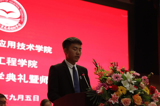 新生代表李柯晓同学向18级新生发出号召,要从各个方面严格要求自己,严格遵守校规校纪,充实自我,磨练自我,通过各个方面对自己进想提升、进步,珍惜自己的大学时光。