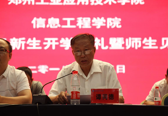 院长谭同德教授发表了讲话,对新生的大学生活和学习提出了自己的意见和要求:第一、要爱国,爱校,爱家。谭院长说到,有国才有家,爱国才能爱家,要知道有国才有家。实现了国家的梦,才能实现自己的梦。第二、做实践的开拓者。青年人要敢于尝试,做实践的开拓者,践行者。第三、相信团队的力量。他说到,一个要卓越,必须要融入团队,必须要借助团队的力量。第四、保护好眼睛,锻炼好身体。身体是革命的本钱,锻炼好身体,保护好眼睛,才能看到爱,才能拥有一个光明的未来。