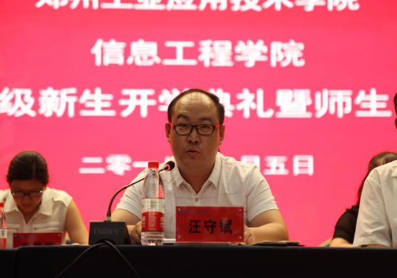 学院分党委书记汪守斌同志首先代表学院向18级新生表示欢迎,然后从我院的学生工作和党团建设谈起,明确了信工学院的各类服务学生成长、进步的学生管理保障体系;同时还在大家的大学生活提出了四点希望,总体是期望新同学尽快实现角色的转变,由“两耳不闻窗外事,一心只读圣贤书”的高中生尽快转变成“国事家事天下事,事事关心;风声雨声读书声,声声入耳”的新时代有为大学生,积极的实现自我完善,积极学习,热爱信工。为信工添砖加瓦,使信工越来越好。