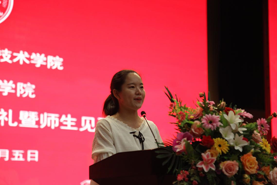 对于大学生应当学什么,如何学,教师代表刘彩霞副教授表示三个学会:学会学习、学会沟通、学会感恩。只有学会学习才能更好的提升个人专业素养,其次学会沟通,只有学会沟通,才能处理好自己的人和同学的关系,最后也是最重要的,学会感恩,感恩父母,感恩老师,懂得感恩的人,才更明白进步的重要意义。