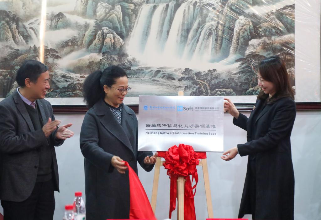 紧接着,副校长杨新新教授与海融软件总经理本惠杰共同为海融软件信息化人才实训基地揭牌。