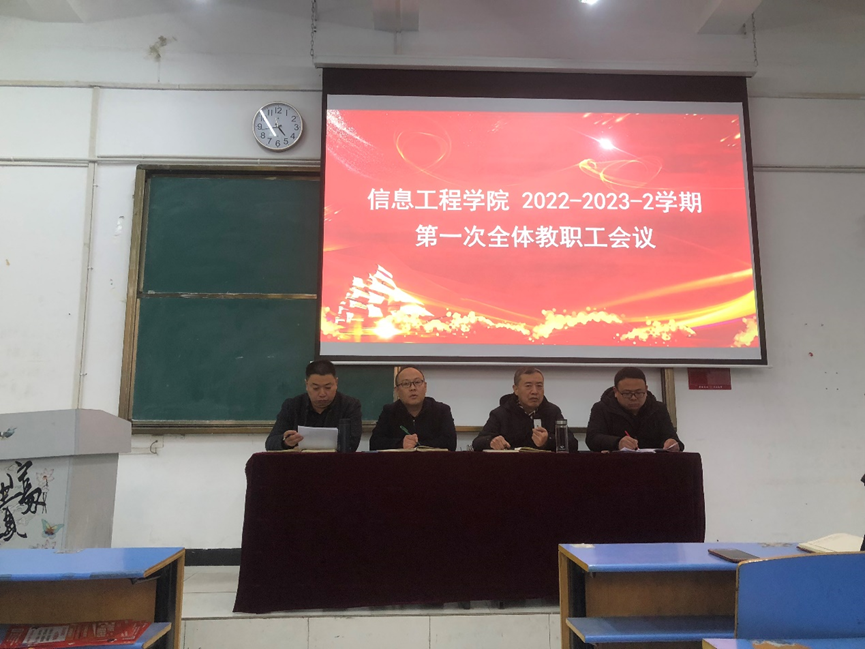(文/耿伟涛 图/耿伟涛)2月22日下午,我院在信科楼阶四召开了全体教职工会议。院长吕宽州、院党委书记、副院长汪守斌、副院长孙滨、副院长侯晓磊及全体教职工参加了会议。