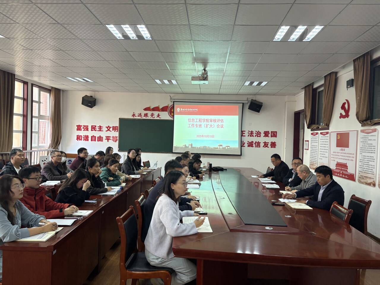 (文/白宗 图/耿伟涛)10月15日,信息工程学院在信科3-305会议室召开审核评估工作专班(扩大)会议暨评估工作推进会,围绕评估筹备核心目标,统筹部署各项重点任务。学院领导班子出席会议,教研室主任、实验室主任、辅导员代表、校院两级督导、专业带头人、课程带头人参加会议,共同凝聚共识、汇聚合力,全力冲刺评估。
