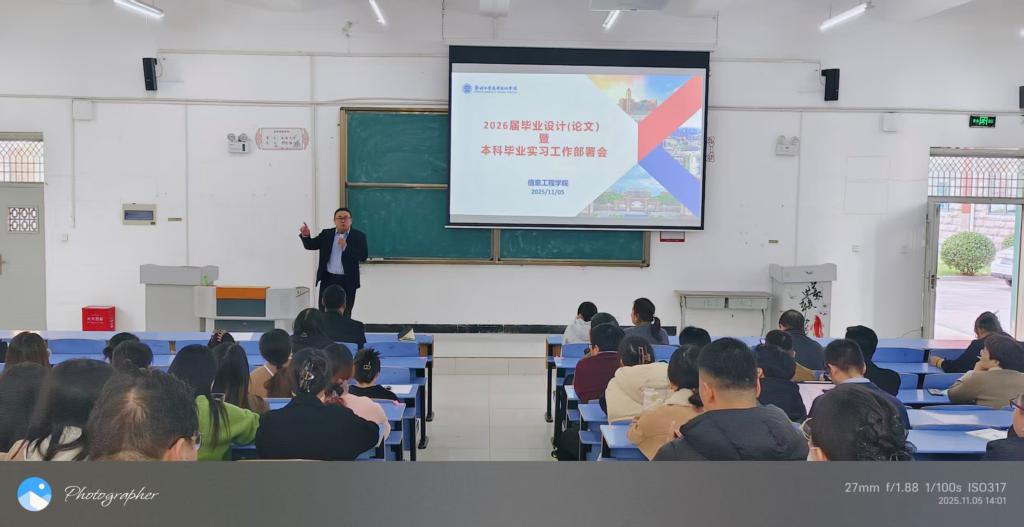 11月5日,信息工程学院召开2026届毕业设计(论文)暨本科毕业实习工作部署会。院长孙滨、副院长吴波及全体2026届毕业设计(论文)、本科毕业实习指导教师参加会议,共同为后续两项核心工作的开展明确方向。